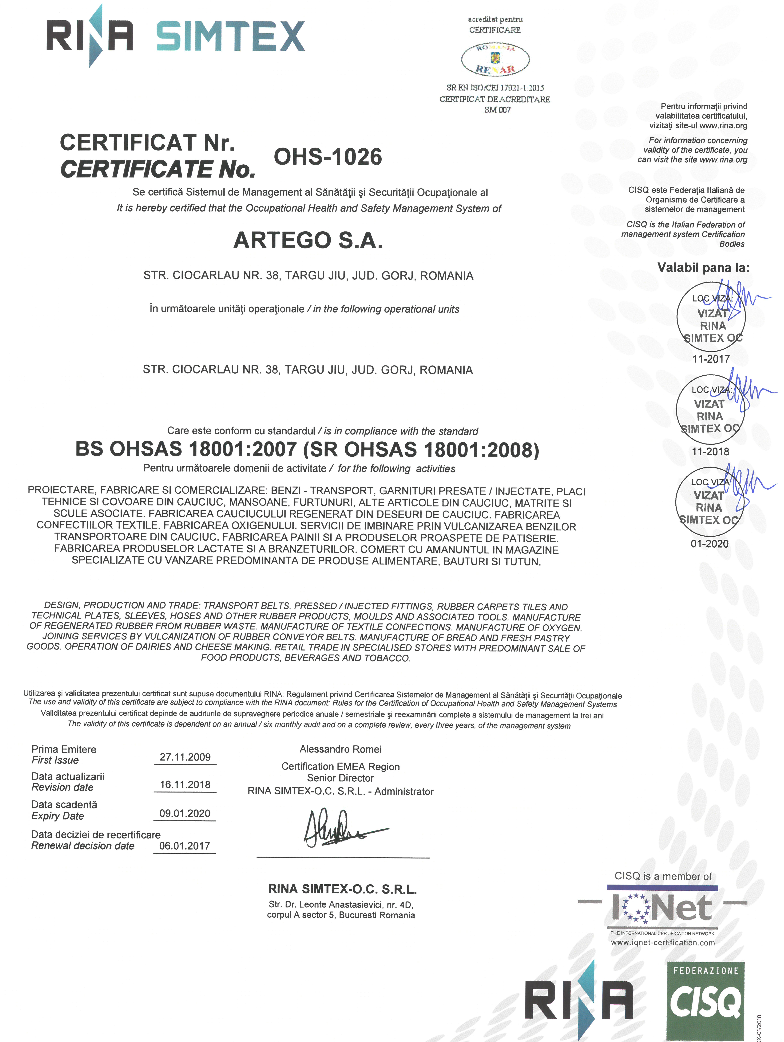 Suntem certificati ISO 9001:2015 si 14001:2015, precum si SR OHSAS 18001:2008.
