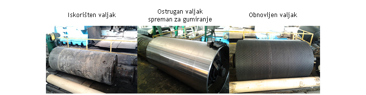 Za obnavljanje radnih valjaka i slobodnih valjaka uzeće se u obzir povezivanje ploča sa smerom rotacije valjaka. U slučaju valjaka korištenim u podzemnim sredinama, koristi se antistatičko i nezapaljivo gume i koje ispunjava sve uslove predviđene standardima bezbednosti rudarstva.